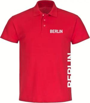 Poloshirt - Berlin rot - Brust & Seite - Druck weiß - Polo Größe L rot