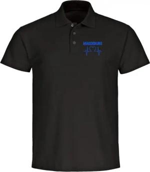 Poloshirt - Braunschweig - Herzschlag - Druck blau - Polo Größe M schwarz-2