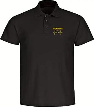 Poloshirt - Braunschweig - Herzschlag - Druck gelb - Polo Größe M schwarz-1