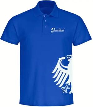 Poloshirt - Deutschland - Adler seitlich - Druck weiß - Polo Größe 3XL blau