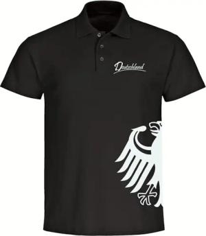 Poloshirt - Deutschland - Adler seitlich - Druck weiß - Polo Größe S schwarz