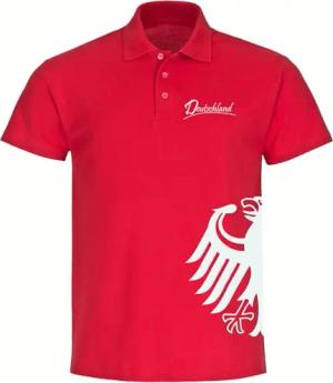 Poloshirt - Deutschland - Adler seitlich - Druck weiß - Polo Größe 3XL rot