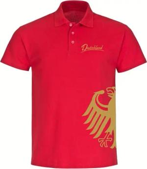 Poloshirt - Deutschland - Adler seitlich Gold - Druck Gold metallic - Polo Größe L rot
