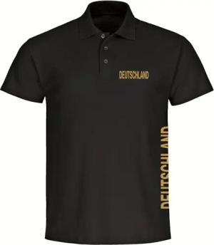 Poloshirt - Deutschland - Brust & Seite Gold - Druck Gold metallic - Polo Größe L schwarz