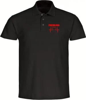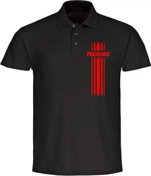 Poloshirt - Freiburg - Streifen - Druck rot - Polo Größe XL schwarz
