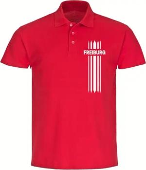 Poloshirt - Freiburg - Streifen - Druck weiß - Polo Größe M rot