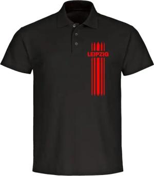 Poloshirt - Leipzig - Streifen - Druck rot - Polo Größe L schwarz