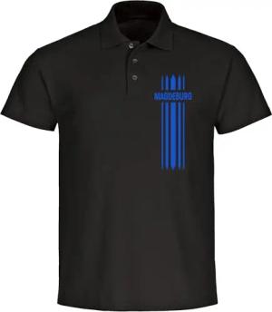 Poloshirt - Magdeburg - Streifen - Druck blau - Polo Größe M schwarz