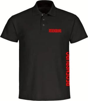 Poloshirt - Regensburg - Brust & Seite - Druck rot - Polo Größe S schwarz
