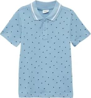 Poloshirt mit Kontrast-Details und All-Over-Print weiß 92/98