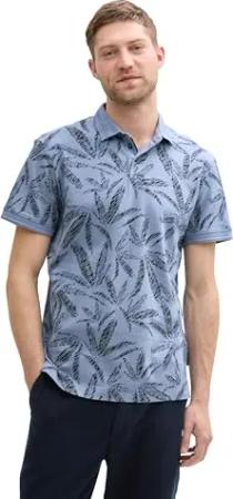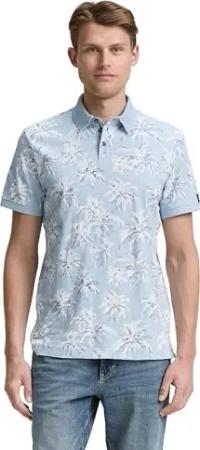 Herren 1036379 Poloshirt mit Palmen-Print, 31046-Blue Tibetan Stone, XL