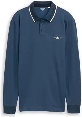 Herren 1047798 Langarm Piqué Poloshirt mit Logo-Print, 39221-Navy Denim Blue Two Tone, XXL