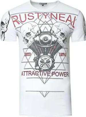 Herren T-Shirt Rundhals Printed Biker Print Slim Cotton Kurzarm Rocker Shirt 277, Farbe:Weiß, Größe S-3XL:XL