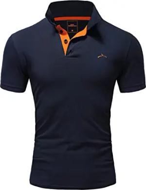 Herren Kurzarm Basic Polo-Shirt T-Shirt MPPREMIUM Navy-Orange M