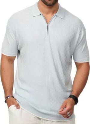 Herren Poloshirt Kurzarm Knit Strick-Polo T-Shirt Freizeit Männer Polo-Hemd Half-Zip Men's Fit S2_Valentine-Blue-XXL