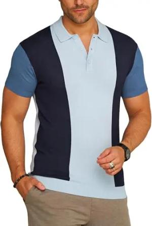 Herren Strick Poloshirt Kurzarm T-Shirt Polo-Hemd Knit Oberteil mit Knopfleiste Strick-Polo Golf-Polo Tennis-Polo mit Kontrast-Stripes S2_KP-101-Navy-L