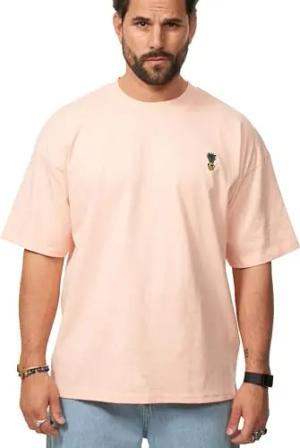 Herren T-Shirt Oversized Fit Kurzarm 100% Baumwolle Rundhals Male Tee Crew-Neck Männer Oberteil S2_Shady-Peach-S