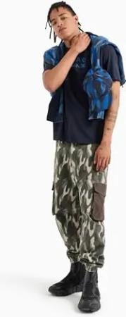 A|X ARMANI EXCHANGE Herren Camo Denim Jacquard Pocket Heavy Jersey T-Shirt, tiefes Marineblau, Klein