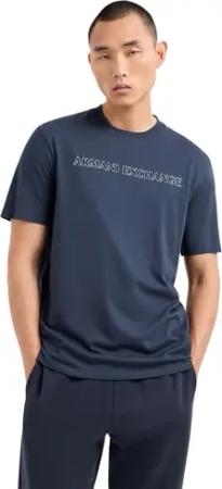 Emporio Armani Herren-T-Shirt mit A|X-Logo mit Teilverzerrung, reguläre Passform, Marineblau, Klein