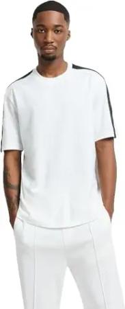 Weißes Kurzarm-T-Shirt für Herren mit Logo-Print und kontrastierenden Bändern, Weiß, XXL