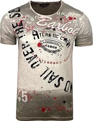 Herren Rundhals Vintage T-Shirt Kurzarm Slim Fit Design Fashion Top Print Shirt B-300, Farbe:Grau, Größe:2XL