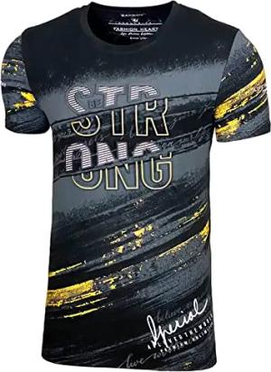 Herren Rundhals Vintage T-Shirt Kurzarm Slim Fit Design Fashion Top All Over Print Shirt B-106, Farbe:Anthrazit, Größe:XL