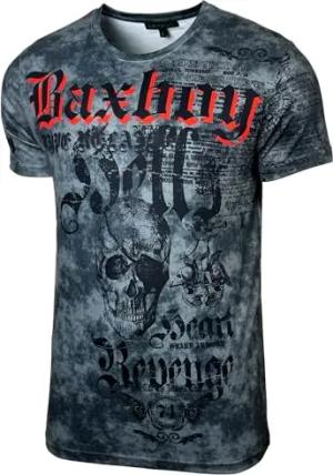 Herren Rundhals Tee Regular Slim Fit O Neck Ausschnitt Vintage T-Shirt Kurzarm Design Fashion Top Print Shirt B-10184, Farbe:Grau_1, Größe:2XL