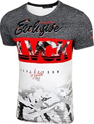 Herren Rundhals Vintage T-Shirt Kurzarm Slim Fit Design Fashion Top Print Shirt B-116, Farbe:Anthrazit, Größe:S