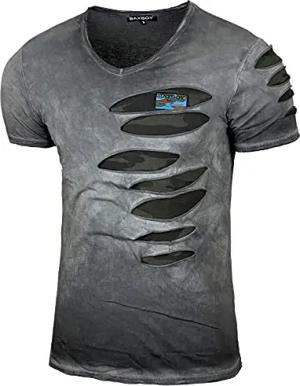 Herren Sommer T-Shirt Rundhals-Ausschnitt Moderner Männer Kurzarm Used Look Tshirt B-220-229, Farbe:225 Schwarz, Größe:XL