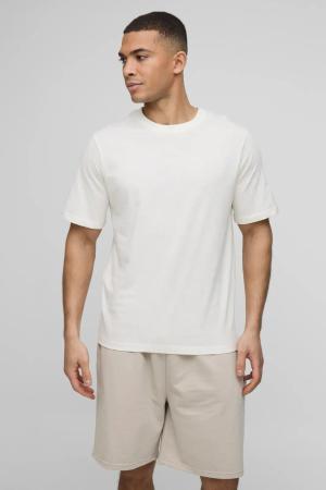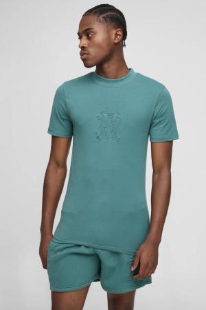 Muscle Fit Extended Neck Peached Bm Embossed T-Shirt & Shorts Set - Forest - L, Forest