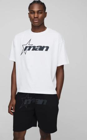 Black Oversized Boxy M Star T-Shirt And Relaxed Short Set - L, Black