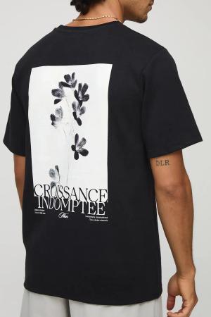 Tall Oversize T-Shirt Mit Floralem Print - Black - S, Black