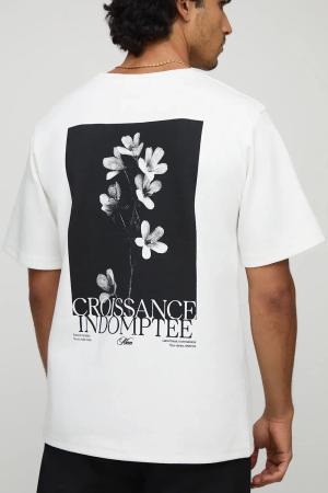 Ecru Regular Fit Super Heavyweight Floral Graphic Embroidered T-Shirt - S, Ecru