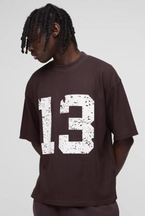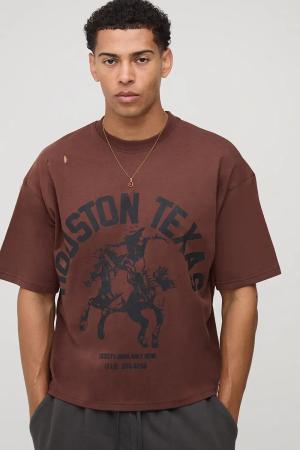 Tall Oversized Applique Star Print Baseball T-Shirt - Brown - M, Brown