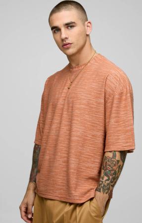 Kastiges Strukturiertes Oversize T-Shirt - Mocha - M, Mocha