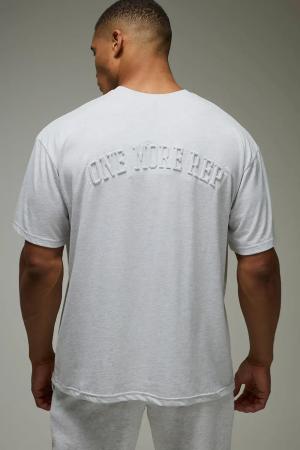 One More Rep Oversized Embossed T-Shirt - Grey Marl - L, Grey Marl
