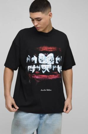 Oversize T-Shirt Mit Lippen-Print - Black - L, Black