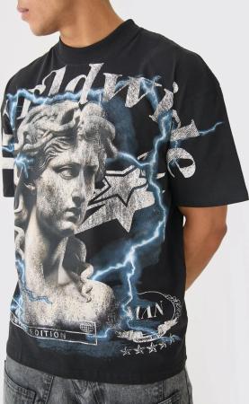 Tall Oversize T-Shirt Mit Renaissance-Print - Charcoal - Xl, Charcoal