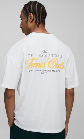 Oversized Hamptons Tennis Club Puff Print T-Shirt - White - M, White
