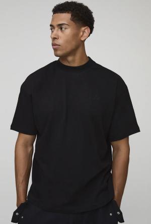 Black Regular Fit Super Heavyweight Floral Graphic Embroidered T-Shirt - M, Black