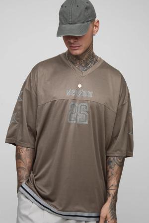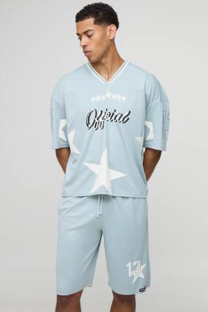 Oversized Official Star Varsity Mesh T-Shirt & Short Set - Grey - L, Grey