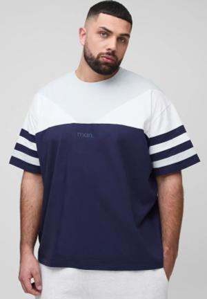 Plus Oversize Man Colorblock T-Shirt - Navy - Xxxl, Navy