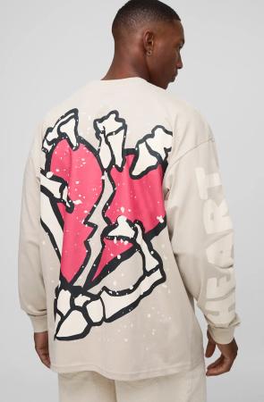 Stone Oversized Long Sleeve Heart T-Shirt - M, Stone