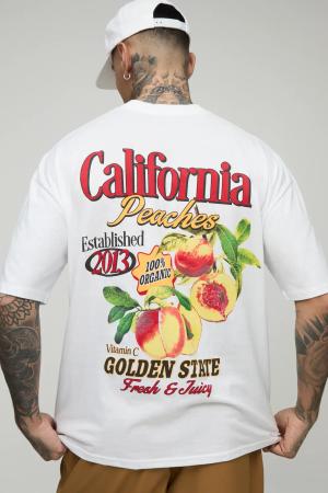 Tall Oversize T-Shirt Mit California Peaches Print - White - M, White