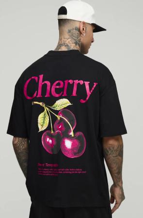 Tall Oversize T-Shirt Mit Kirsch-Print - Black - L, Black