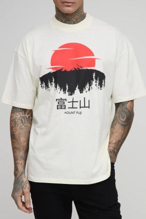 Tall Oversize T-Shirt Mit Mountain Shadow Print - Ecru - M, Ecru