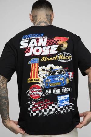 Tall Oversize T-Shirt Mit San Diego Moto-Print - Black - M, Black