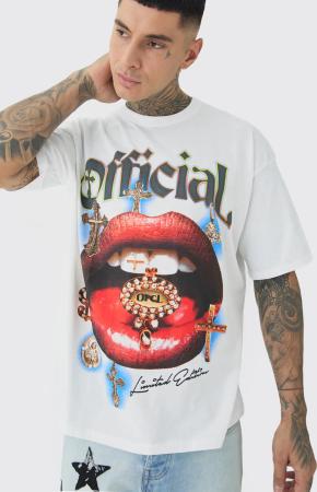 Tall Weißes Oversize T-Shirt Mit Official Lips Print - White - 2Xl, White