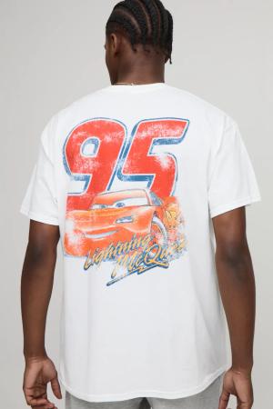Weißes Oversize T-Shirt Mit Lizenziertem Disney Cars Print - White - M, White