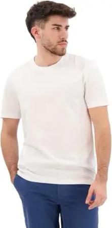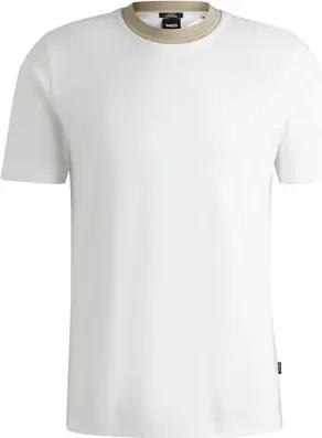 Herren H-Tessler 199 Slim-Fit T-Shirt aus merzerisierter Baumwolle mit Streifen am Kragen Weiß M